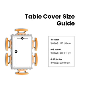 4 Seater-( 100 x 150 cm), 6-8 Seater-( 150 x 230 cm), 8-10 Seater( 150 x 271 cm) |