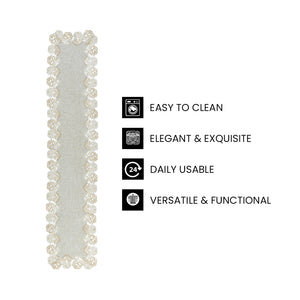 VERSATILE & FUNCTIONAL : This table runner is perfect for a variety of uses. Whether it's for weddings, formal dinners, or as a decorative cover for bedside tables, sofas, or even refrigerators, its versatility ensures it complements any decor.
