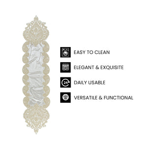 VERSATILE & FUNCTIONAL : This table runner is perfect for a variety of uses. Whether it's for weddings, formal dinners, or as a decorative cover for bedside tables, sofas, or even refrigerators, its versatility ensures it complements any decor.