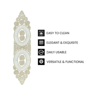 VERSATILE & FUNCTIONAL : This table runner is perfect for a variety of uses. Whether it's for weddings, formal dinners, or as a decorative cover for bedside tables, sofas, or even refrigerators, its versatility ensures it complements any decor.