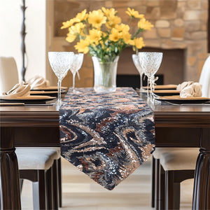 Designed on a deep navy canvas, this exquisite table runner showcases a stunning interplay of copper, bronze, and silver sequins that shimmer beautifully under any light. Perfect for festive gatherings, elegant dinners, or stylish everyday décor, it adds a touch of glamour without overpowering your setting. Crafted with premium quality, it ensures both durability and timeless elegance.
