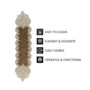 VERSATILE & FUNCTIONAL : This table runner is perfect for a variety of uses. Whether it's for weddings, formal dinners, or as a decorative cover for bedside tables, sofas, or even refrigerators, its versatility ensures it complements any decor.