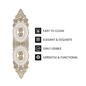 VERSATILE & FUNCTIONAL : This table runner is perfect for a variety of uses. Whether it's for weddings, formal dinners, or as a decorative cover for bedside tables, sofas, or even refrigerators, its versatility ensures it complements any decor.